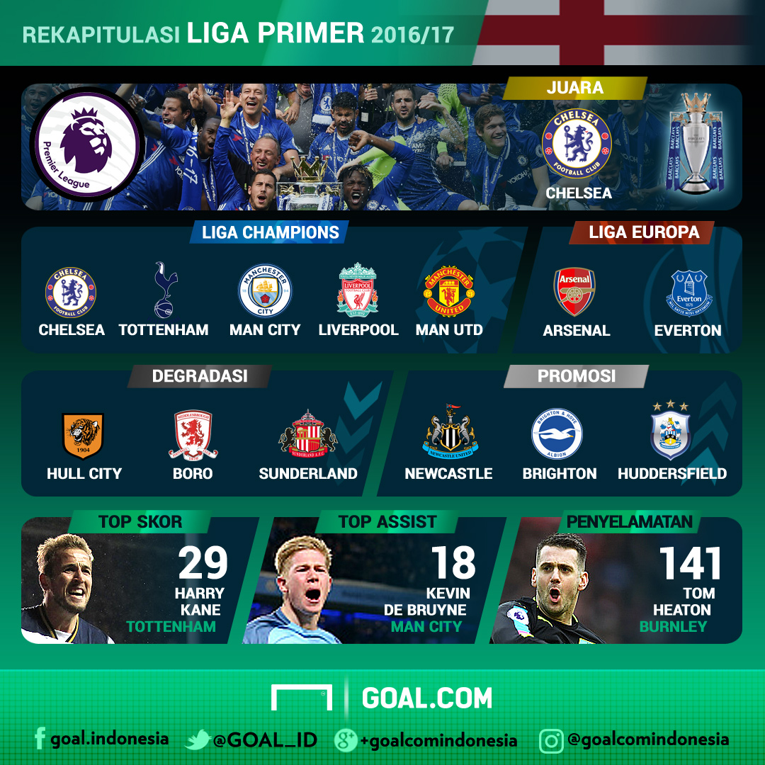 REKAPITULASI Liga Primer Inggris 2016 17 Goal com